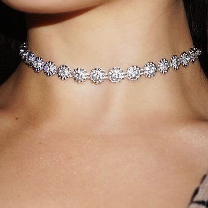 الرقبة القصيرة:إذا كانت لديك رقبة قصيرة فستناسبك الحلي المعلقة، أو قلادة الحلقات أو السلاسل البسيطة مع المعلقات.