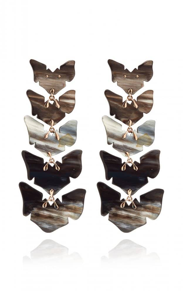 تقدم مجوهرات فيديريكا ريتوري Federica Rettore هذه التصاميم من الأقراط بشكل الفراشات التي تم صنعها بأنواع مختلفة من المعادن مع إضافة أنواع متعددة من الأحجار ذات الألوان المختلفة التي تم اختيارها بعناية، لتتكون قطعة فنية بأسلوب حرفي غاية في الروعة تعبر عن مهارة وحرفية الصانع الذي قام بهذه القطعة الفنية الذي تتميز ببساطتها وجمالها كما تناسب مختلف إطلالاتك.