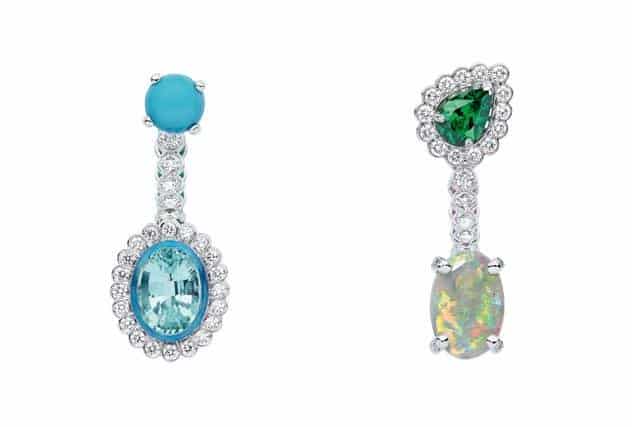 من مجوهرات ديور نقدم لك هذا الموديل المصنوع من الذهب الأبيض المزين بأحجار كريمة مختلفة، وهي الألماس، الأوبال، الفيروز، الزمرد والترومالين، في تصميم مميز، ساحر لا يخلو من الأنوثة، من مجموعة العلامة Dior et Moi.