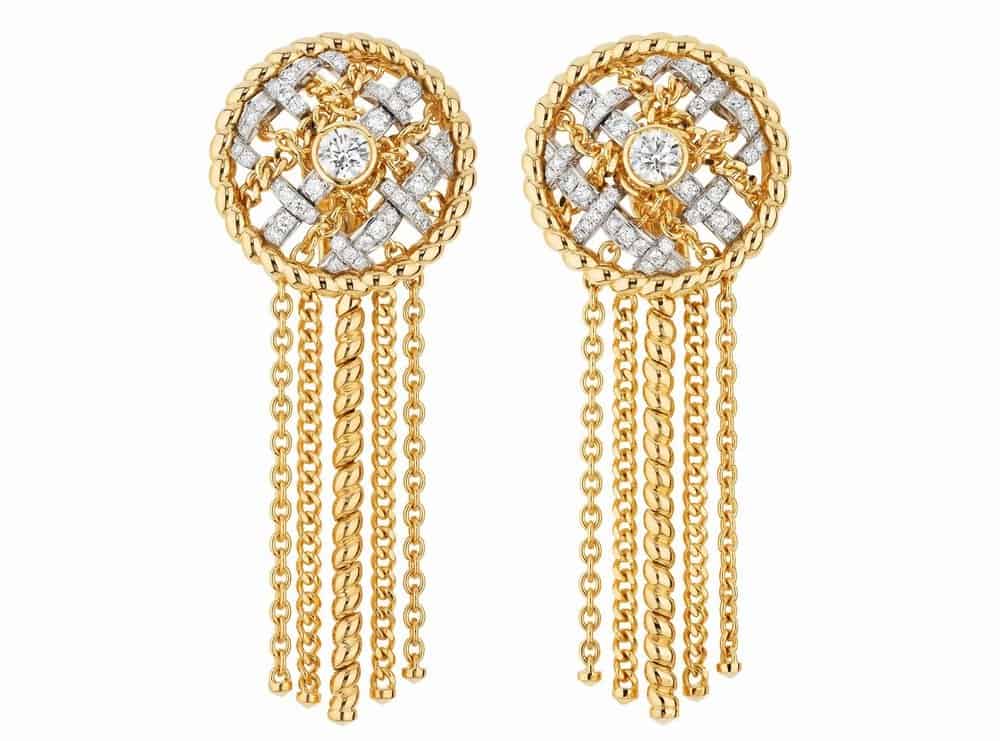 من أحدث اصدارات مجوهرات شانيل الفرنسية ، انتقينا لك هذا الموديل من الأقراط الذي تقدمه لنا العلامة من مزيج ساحر من الذهب الأصفر والذهب الأبيض المرصع بالألماس، في تصميم أنيق ومتألق استوحى شكله من أقمشة التويد، وتعود هذه الأقراط لمجموعة المجوهرات التي أصدرتها شانيل Tweed De Chanel.