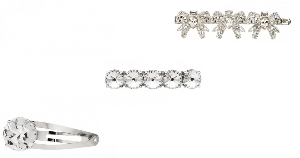 نقترح مشابك ماركة ميو ميو المزينة باللون الفضي، لكي تزيني بها إطلالاتك الخريفية لأنها تناسب كل الإطلالات خاصة المسائية منها، إذ ستضيف لك لمسة لافتة وأنيقة بأسلوب أنثوي ناعم بفضل الألوان الفضية البراقة التي تتمتع بها هذه المشابك.