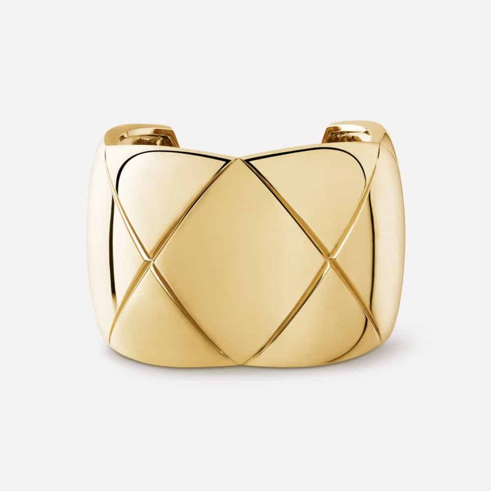 لعشاق الإطلالات الجريئة التي تحتوي على قطع من المجوهرات المختلفة عن غيرها عليهن اختيار هذا السوار من شانيل الذي يتميز بشكله العريض ونقوشه البسيطة والجميلة التي تحمل طابعا عصريا يلائم إطلالتك في فصل الشتاء.