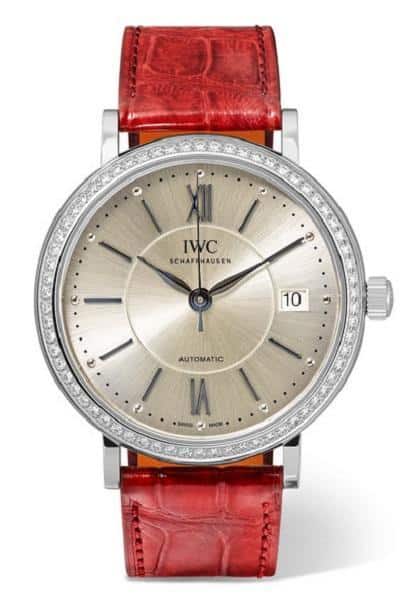 من العلامة السويسرية لصنع الساعات الفخمة آي دبليو سي IWC SCHAFFHAUSEN نقدم لك ساعة Portofino Automatic ذات السوار الأحمر لمحبات هذا اللون الرائع، حيث تتميز بسوارها الجلدي المصنوع من جلد التمساح والمرصعة بقطع من الألماس، شكلها الجذاب يناسب إطلالتك النهارية.