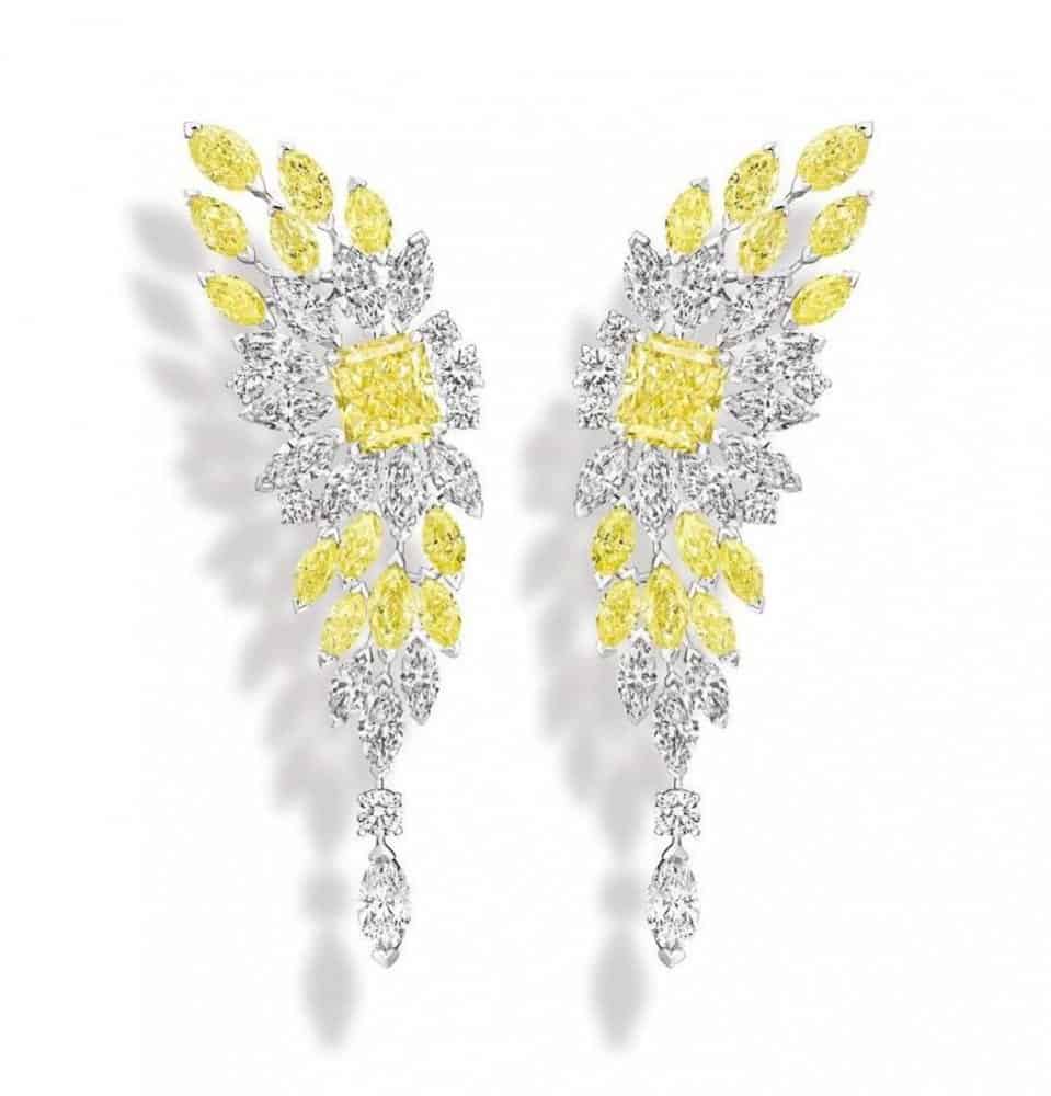 بتصميم جذاب بلونها الأصفر نقدم لك أقراط بياجيه المميزة ضمن مجموعة Golden Oasis والمصنوعة من الذهب الأبيض المزين بالألماس بلونيه الأبيض والأصفر الأصفر الرائع.