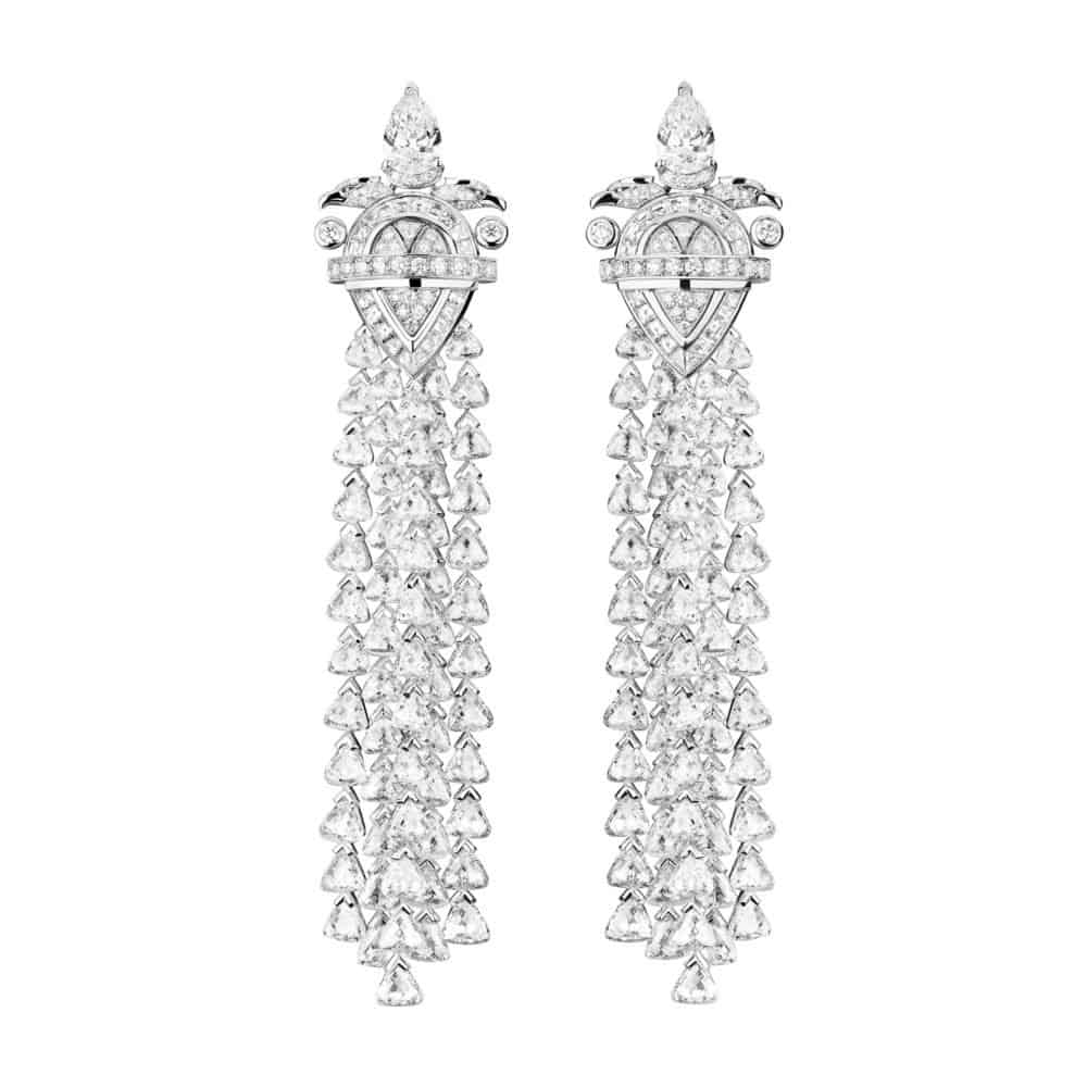 من مجموعة المجوهرات Le Paris Russe De Chanel التابعة للماركة العالمية الشهيرة شانيل، نقدم لك هذه الأقراط المرصعة بالألماس اللامع والمصنوعة من الذهب الأبيض والتي تعكس جمال وفخامة التصميم، كما تناسب مختلف الإطلالات.