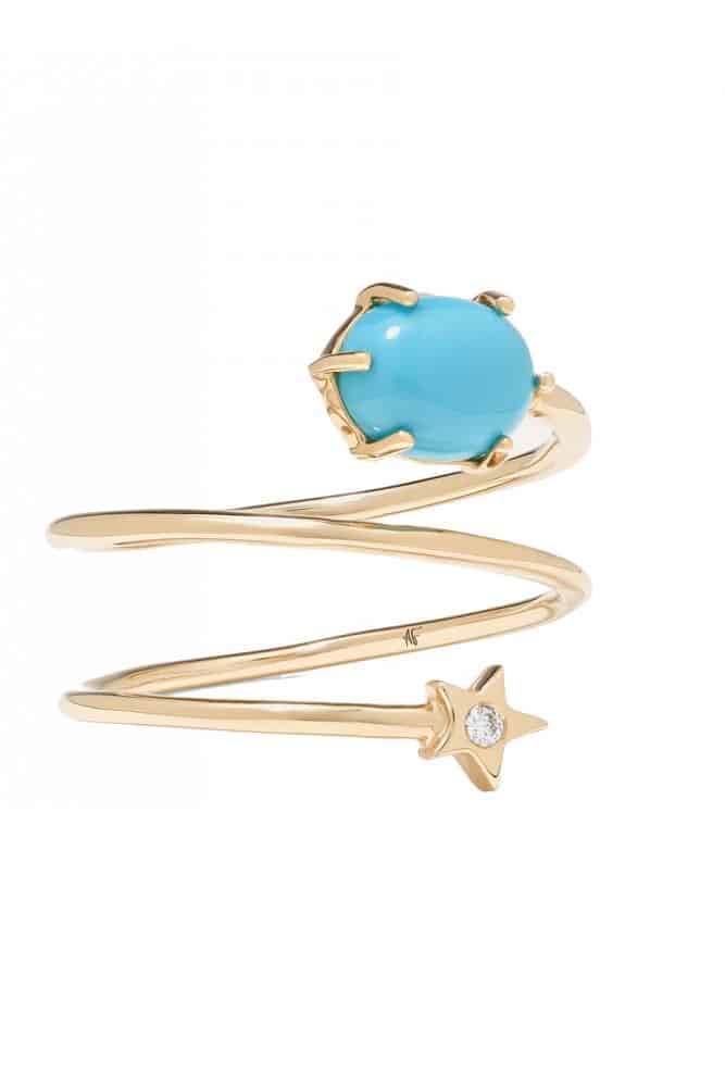 إليك خاتم الذهب الوردي هذا المصنوع من الذهب وردي من اصدارات مجوهرات أندريا فوهرمان الذي يستمد سحره من الألماس مع الفيروز اللذان يزينانه، في تصميم لولبي، إذ يعانق أصبعك عند اعتماده بأسلوب راقي وأنيق.