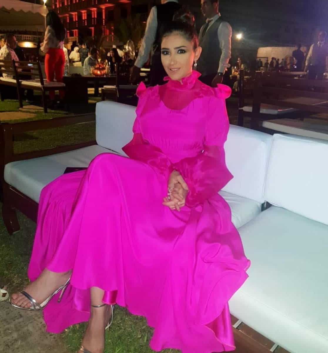 تزينت مي عمر في أحد حفلات السحور ببيروت بفستان ماكسي تميز بلونه الفوشي الجذاب وأكمامه الطويلة، جمع الفستان بين التصميم المحتشم ولمسات العصرية الأنيقة، تميز أيضا بكشكش مزين على أطراف الأكمام ومن جهة الياقة، استعملت أيضا حقيبة كتف باللون الأسود.