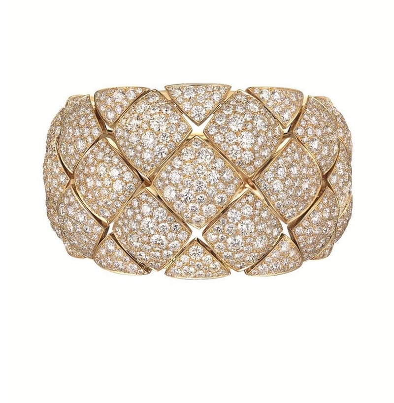سوار أنيق وجذاب من بولغاري مصنوع من أحجار الألماس التي تزوقه بالكامل.