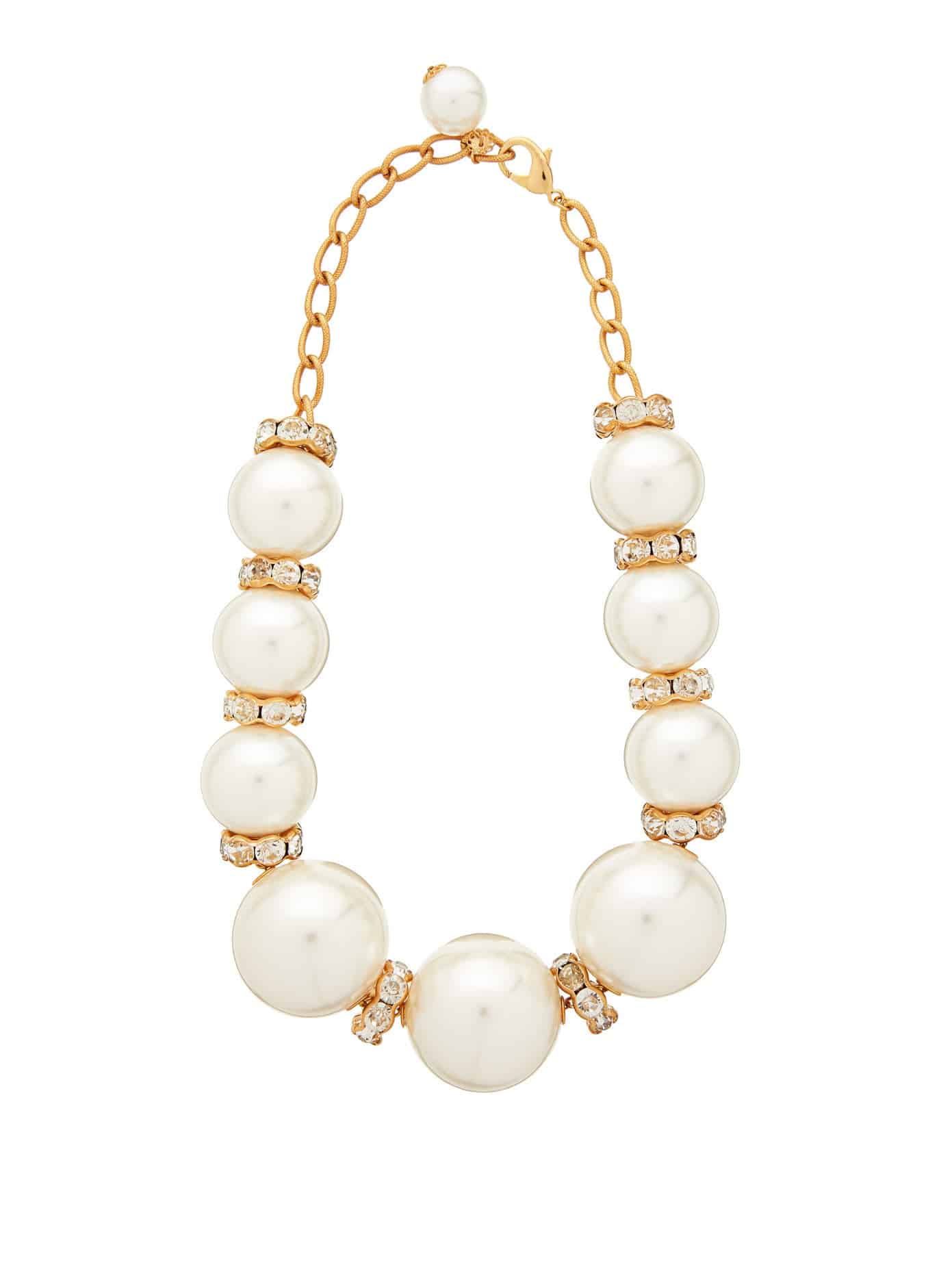 ومن علامة دولتش أند غابانا اخترنا لك هذا العقد الذي يتزين بحبات اللؤلؤ المختلفة الأحجام مع لمسات رائعة من الألماس، والذي أبهرتنا به بفضل تصميمه الجذاب والفاخر، حيث قدمته ضمن مجوهراتها لفصل شتاء 2020، ويأتي موديل العقد بحبات لؤلؤ يفصل بين الواحدة والأخرى سلسلة من الذهب الأصفر الذي تزينه قطع من الألماس بتصميم رائع وجذاب.