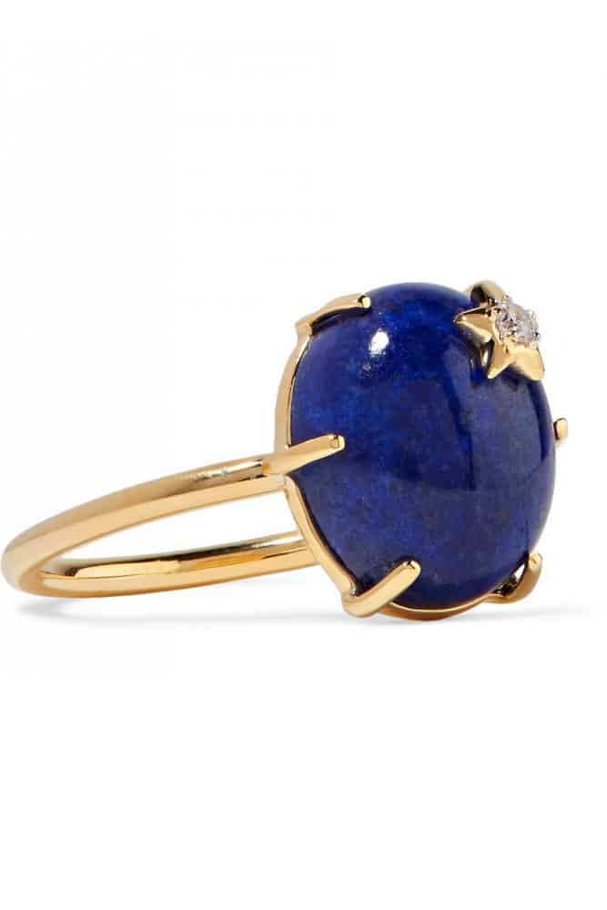 انتقينا لك من علامة أندريا فوهرمان هذا الخاتم الذي تمت صناعته من الذهب الأصفر بطريقة ساحرة مع ترصيعه بالألماس وإضافة قطعة كبيرة الحجم من اللازورد بيضاوية الشكل، في تصميم لافت للأنظار بأسلوب جذاب.