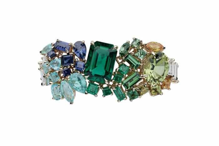 نبدأ تشكيلتنا الخريفية للمجوهرات من علامة ديور الفرنسية وبالتحديد من مجموعة المجوهرات خاصتها Gem Dior والتي انتقينا منها هذا السوار المصنوع من الذهب الأصفر المغطى بالألماس، أحجار الزمرد، التنزانيت، البارايبا تورمالين، الياقوت، التسافوريت. في تصميم حافل بالأحجار الكريمة الذي يبرز جمالها ودقة التصميم.