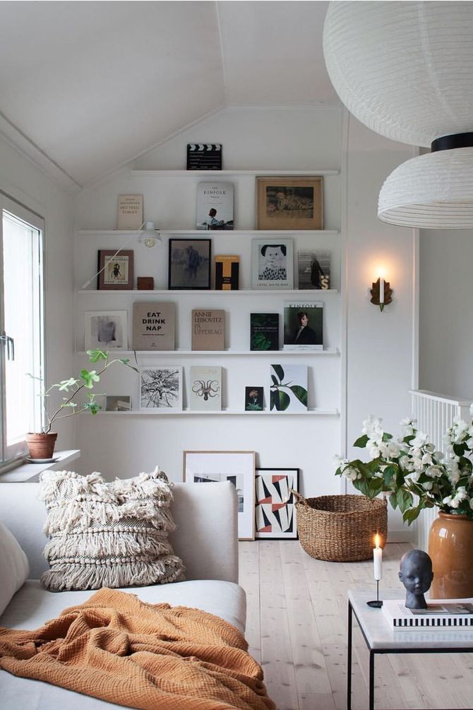 هل فكرت في إضافة أرفف على جدرانك البيضاء، حيث عليك وضع كتب، حلي، نبتة منزلية صغيرة، أصيص به صبار، شموع… هناك الكثير من الأشياء التي تستطعين وضعها على هذه الأرفف العملاقة حتى تخلقي جو بوهيمي في منزلك.