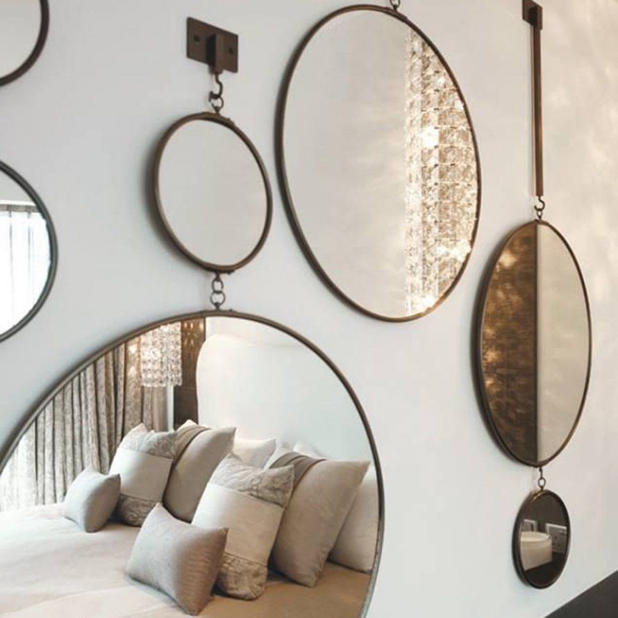 لتزيين الجدار دون تحميله الكثير من الملصقات، يمكنك تثبيت مرآة كبيرة على الحائط ، أو مجموعة مرايا صغيرة دون أن تكون منتظمة، حيث ستكون أفضل إذا قمت بتعليقها بشكل عشوائي.