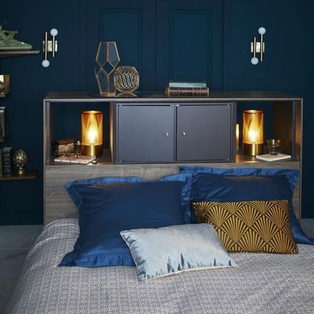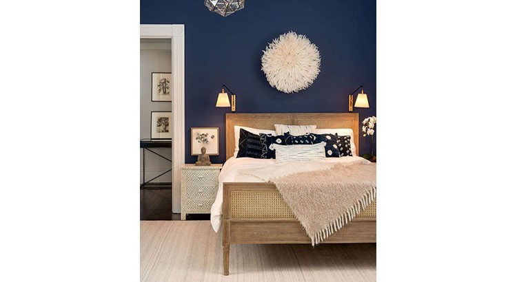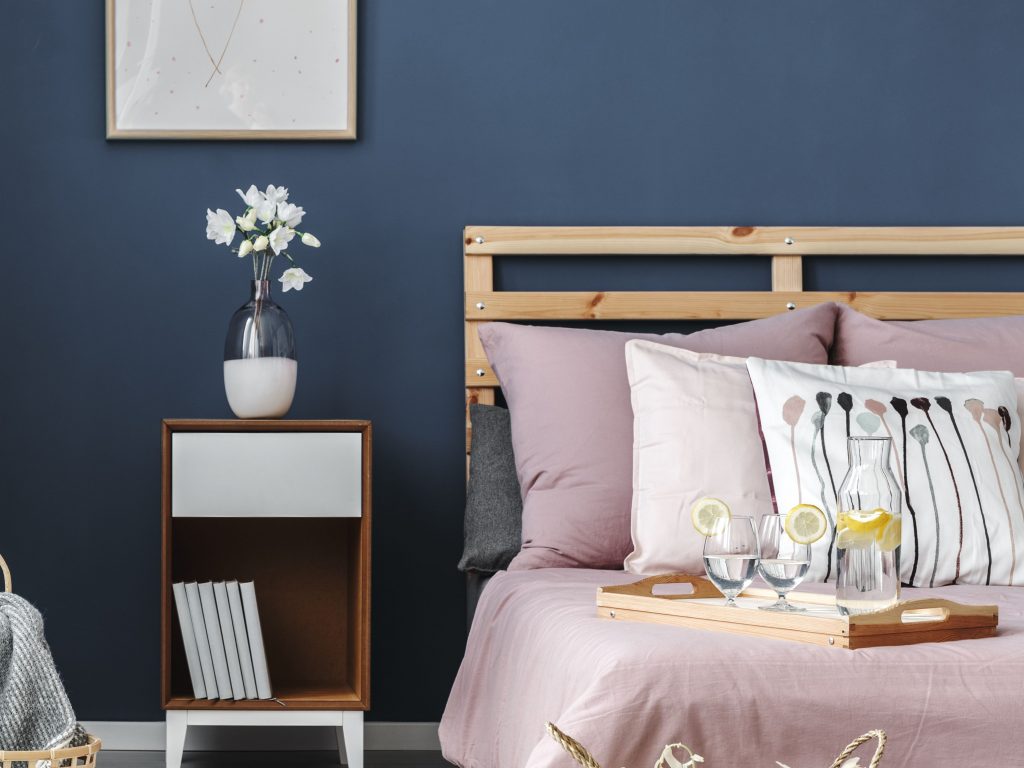 يعتبر اللون الأزرق الداكن من الألوان التي تحسن المزاج وتساعد على النوم طيلة الليل، ولتكبير مساحة الغرفة، يمكنك اختيار طلاء هذا اللون على جدار واحد فقط.