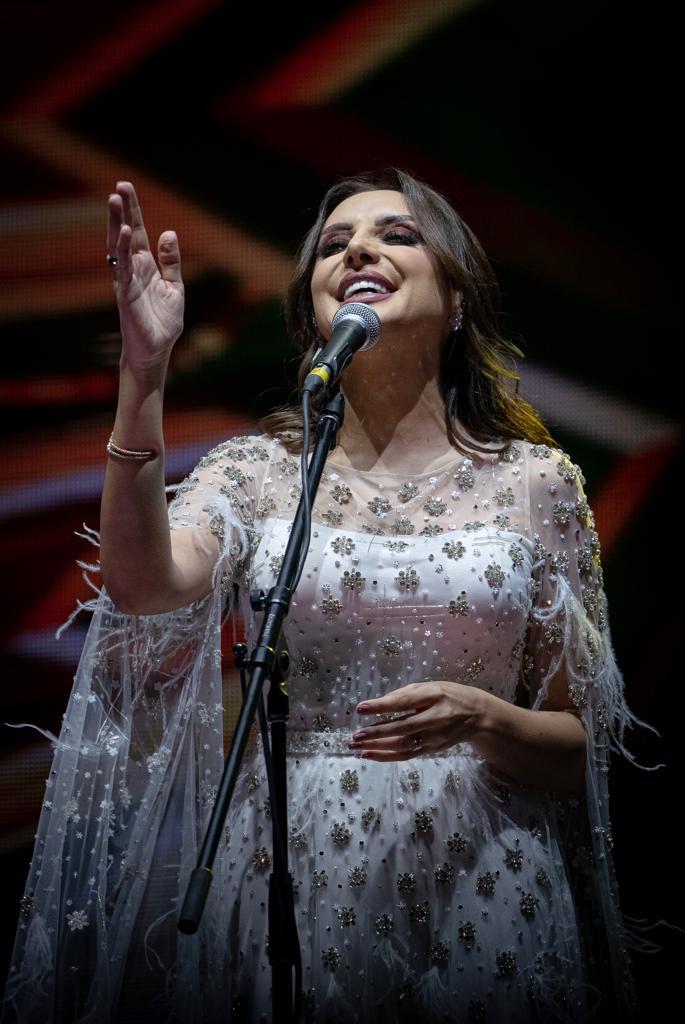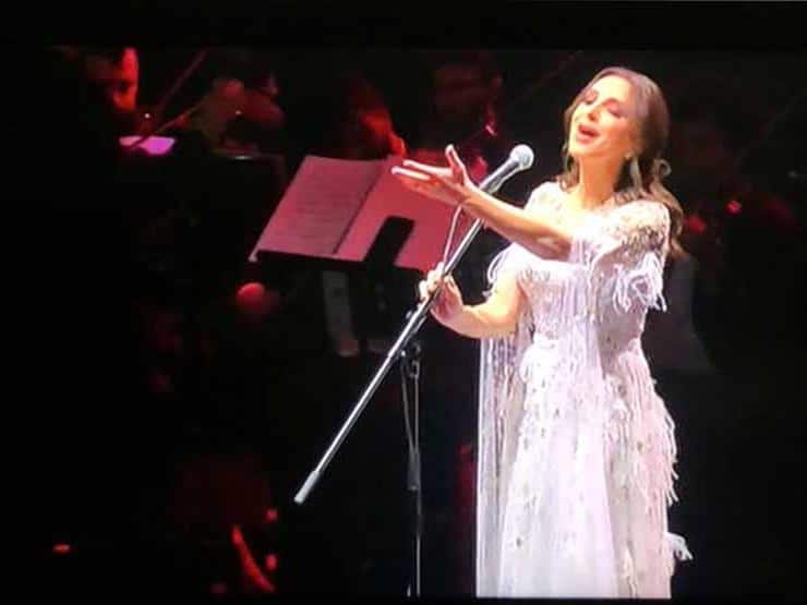 بعد إكمال أنغام كلماتها المتألقة هتفت الجماهير بالترحيب والشكر للفنانة على مشاعرها اتجاه السعوديين لتنطلق أنغام بعد هتافهم في غناء العمل الذي جمعها مع تركي آل الشيخ.