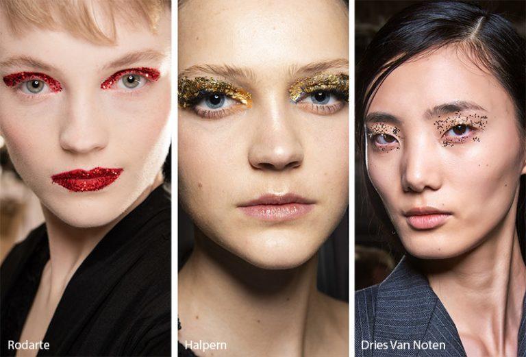 كان استعمال وتطبيق مستحضرات الجليتر يتم فقط من خلال لمسة خفيفة لضلال العيون، ولكن أصبح الأمر الآن عكس ذلك ففي صيحة لافتة وخارجة عن المعهود تضفي لمسة عصرية جذابة يمكن اعتماد مكياج الجليتر بتركيز أكثر وبمختلف الألوان كالأحمر، الأصفر والفضي.