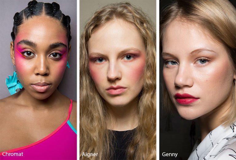 وضمن الصيحات المميزة والفريدة كذلك برزت هذه الصيحة، حيث يعتمد مستحضر البلاش بأسلوب قوي وبارز على الخدين مع اعتماد روج بنفس لون البلاش الذي طبقتيه لكي تحصلي على مكياج متناسق، وقد برز كذلك أسلوب تطبيق للبلاش مختلف عن العادة، إذ تم اعتماده على عضمتي الخد وصولا إلى محيط العينين وقليلا تحت وفوق الحاجبين.