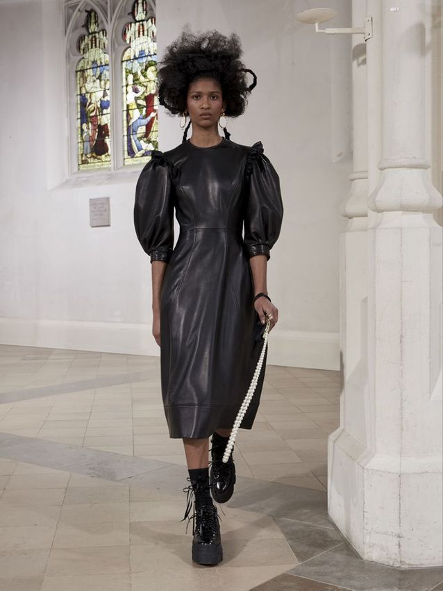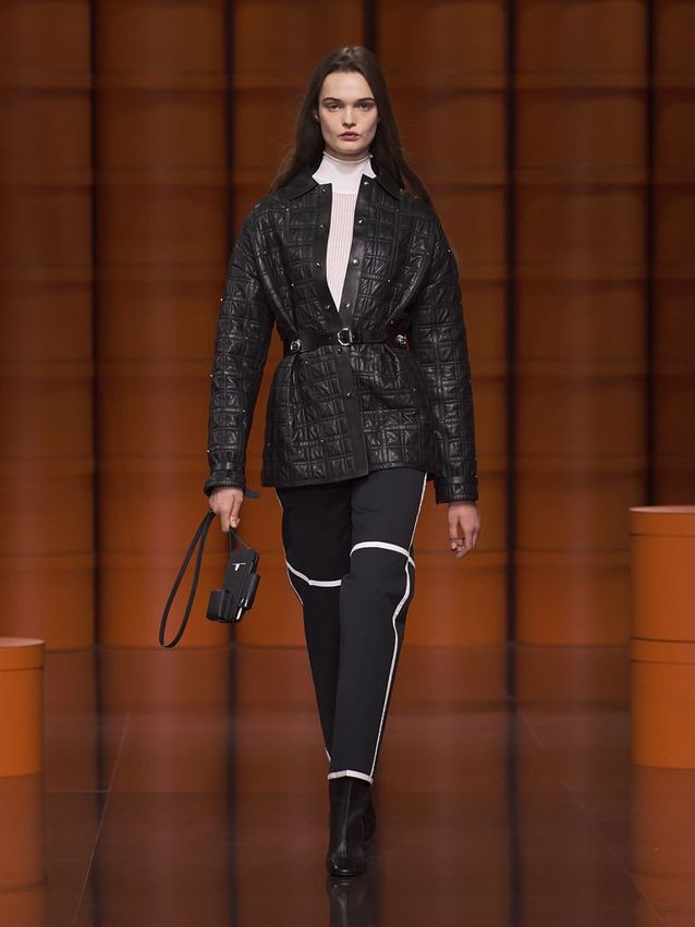 يعتبر الجلد هو ملك الموسم دائمًا في فصل الشتاء، للتمتع بأناقة باريسية اختاري سترة جلدية من جيفنشي ، أو بليزر من فندي يمكنك تنسيقها مع فستان بأكمام بالون مثل عارضة سيمون روشا.