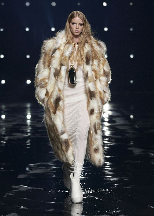 لحماية نفسك من قساوة طقس الشتاء، لا تترددي في اختيار معطف الفرو الصناعي مثل الموديل الموحد اللون من جيفنشي، يمكنك تنسيقه مع جزمة من الميتاليك ونظارات شمسية عصرية مثل Balenciaga ، أو حتى مع حقيبة كلاتش من الفرو الصناعي مثل Prada.