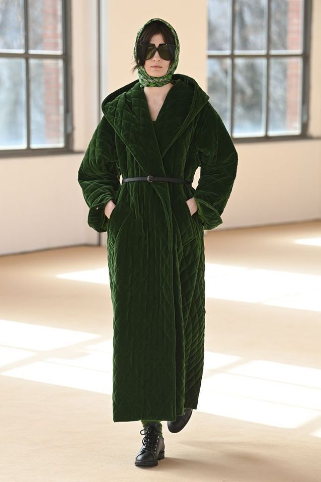 من الخامات الكلاسيكية الشتوية الراقية ويمنحك إطلالة أنيقة وساحرة، مثل بدلة من غوتشي أو معطف للحمام مثل ماكس مارا.