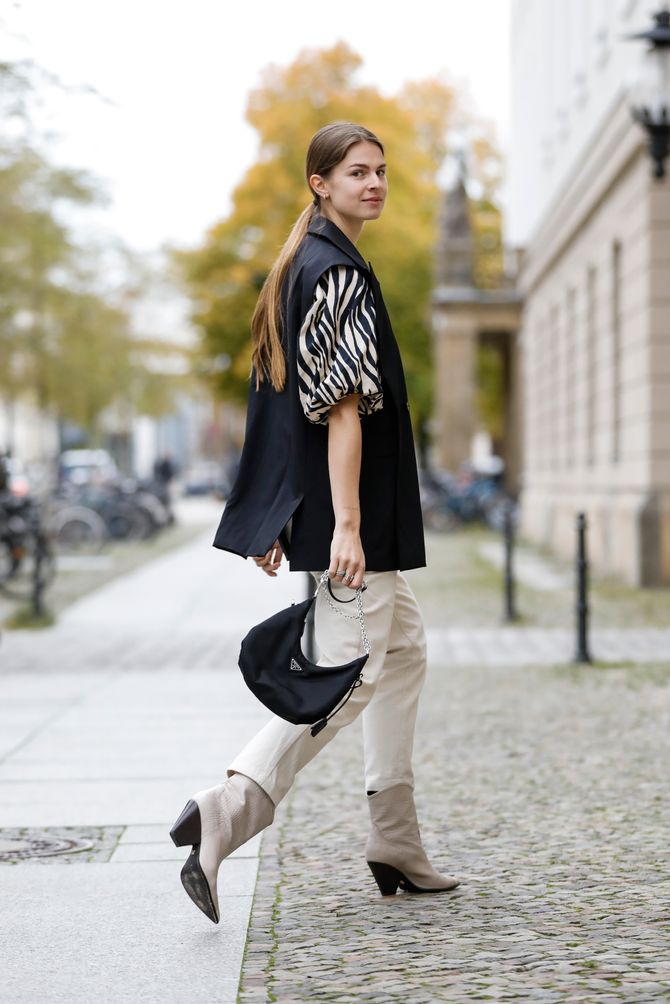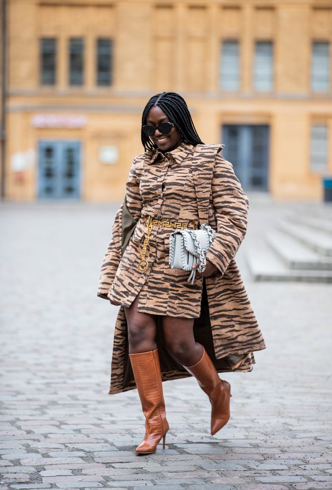 يمكنك اختيار حقيبة يد، حذاء طويل الكاحل، كنزة، تنورة أو بنطلون منقوش.