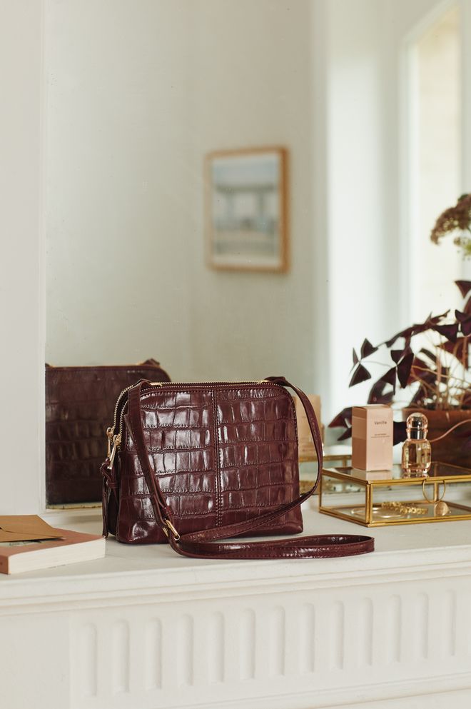 في هذا الموسم، من التصاميم الرائجة كذلك الحقائب المصنوعة من الجلد المنقوش على شكل جلد التمساح، الحمار الوحشي الثعبان، النمر، سواء بلون الشوكولاتة ، البورجوندي ، أو أخضر داكن أو أسود .