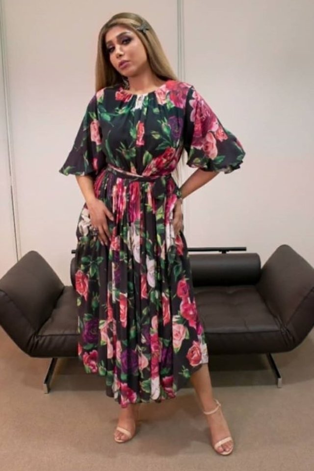 نجحت النجمة أروى في اختيار اطلالاتها في برنامج رامز مجنون رسمي، حيث ظهرت في كل مرة بلوك جديد ومميز. أحببنا الفساتين الرائعة والمواكبة لموسم 2020، وقد لفت أنظارنا الفستان بنقوش الكاروه الأبيض والأسود الذي يسمى بالـ Houndstooth ، بالإضافة إلى التصاميم المزوقة بطبعات الورود، إلى جانب الموديلات الناعمة من فساتين الشيفون.