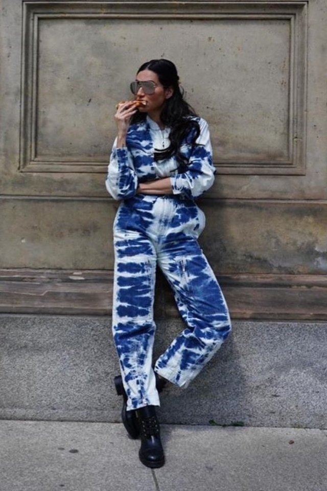 تعتبر موضة الـ Tie dye أو ما تسمى بالعقد والربط من الموديلات التي لاقت انتشار كبير ضمن موضة صيف 2020. حيث ظهرت المذيعة ديالا مكي بجمبسوت جينز بتصميم عصري ونسقته مع حذاء رياضي، لمظهر كاجوال مميزة استلهمي منها إطلالتك للخروج مع الأصدقاء أو في الجامعة.