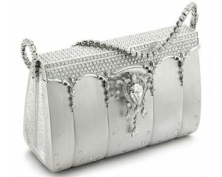 هذه الحقيبة الفريدة والفخمة من توقيع المصمم الياباني جينزا تاناكا سنة 2008 ، تتميز بمحفظة من البلاتين ومزوقة بأكثر من 2000 ماسة.