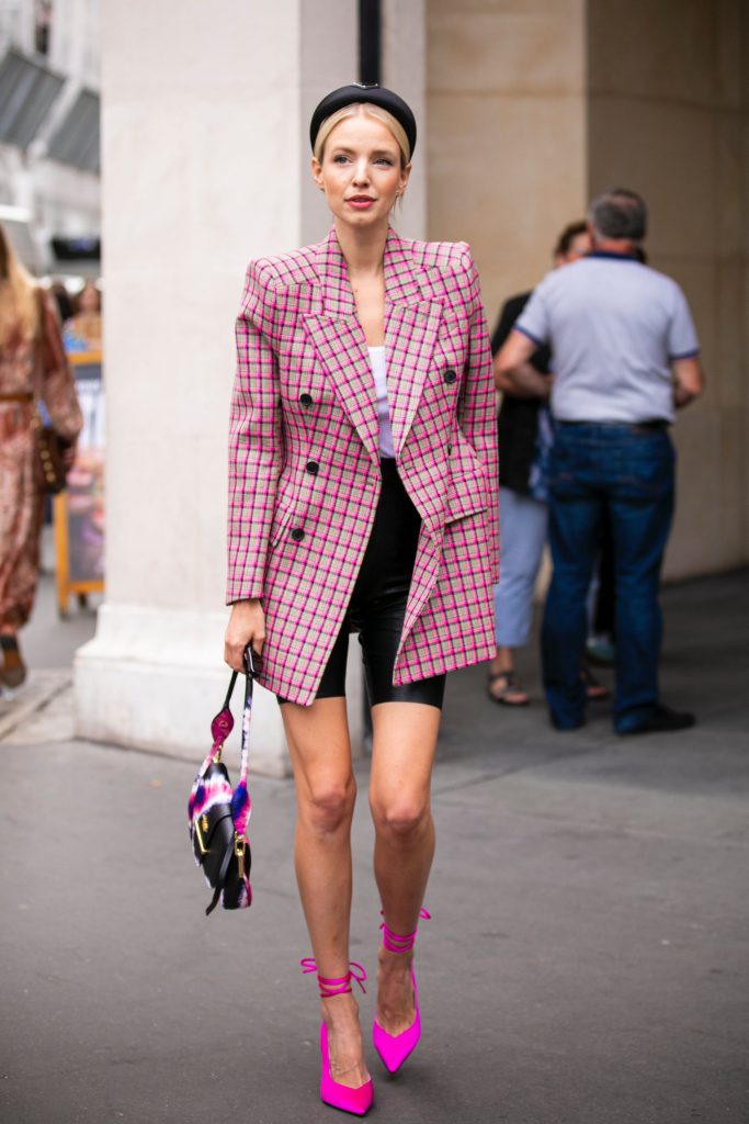 لمظهر أنيق وجذاب، يمكنك تنسيق الشورت مع معطف من الجلد المربوط وصندل بأربطة.