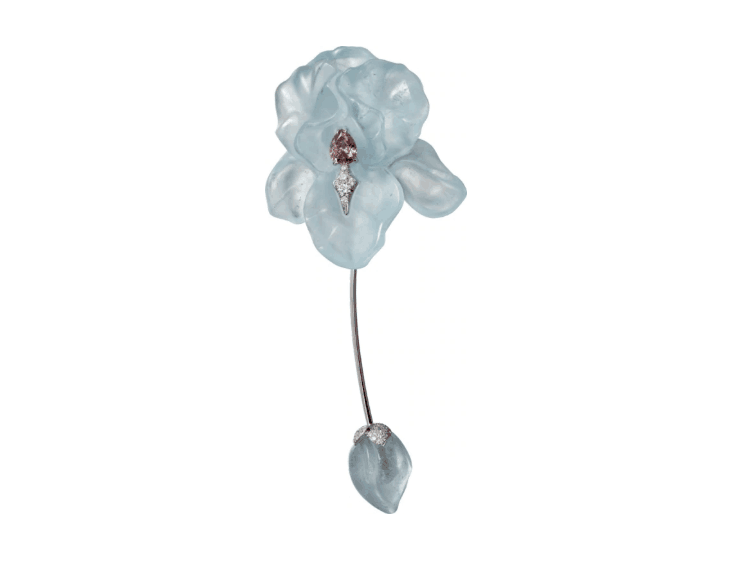 بروش من أكبر شركات المجوهرات كارتييه مصنوع من الذهب الأبيض ومرصع بالماس الأبيض والأكوامارين والألماس الوردي.
