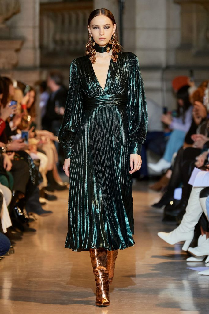 بما أن القماش المخملي من الصيحات الرائجة في الموسم الجديد، اخترنا لك هذا الموديل من تصميم الماركة العالمية رالف لورين Ralph Lauren ، موديل مزوق بشق طويل يمكنك تنسيقه مع صندال أو حذاء ذو كعب عالي أسود أو ذهبي.