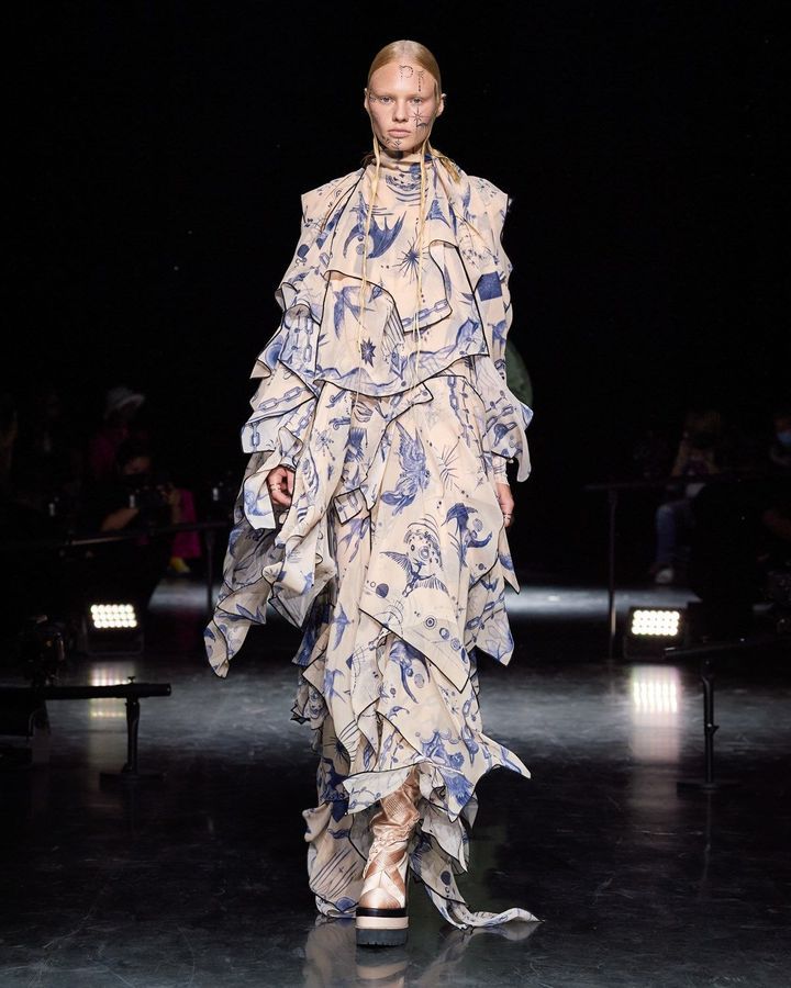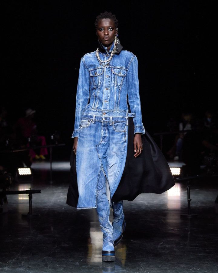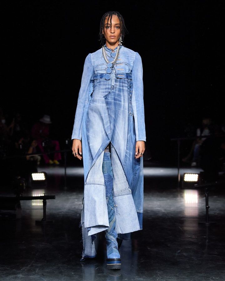 عرض يقدم قطع فريدة معاد تدويرها، وبعض الفساتين عبارة عن تركيبات من عدة خامات مثل الجينز من Levi وبعض السترات عبارة عن خليط من القمصان.