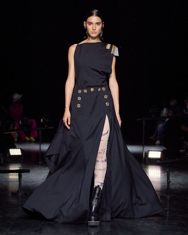 كما ظهرت العارضات بأحذية ملونة من تصميم شيتوس آبي، المدير الفني، كل نموذج يمثل دور المرأة المحاربة والمقاتلة في الحياة اليومية.