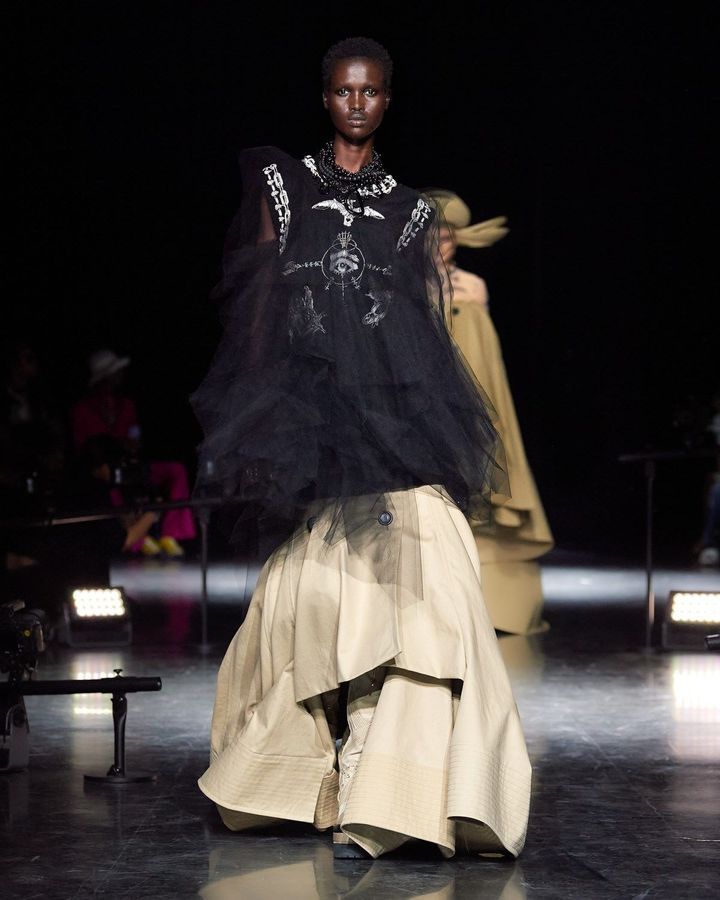 كان عرض مميز وراقي، عندما انطفأت الأضواء وبدأت الموسيقى في العزف داخل المقر الرئيسي للمبدع العظيم، حبس الجمهور أنفاسهم لرؤية التصاميم الجديدة، حيث ترك جين بول غوتييه بصماته المحبوكة بفن واحتراف وإبداع يخطف الأنفاس.