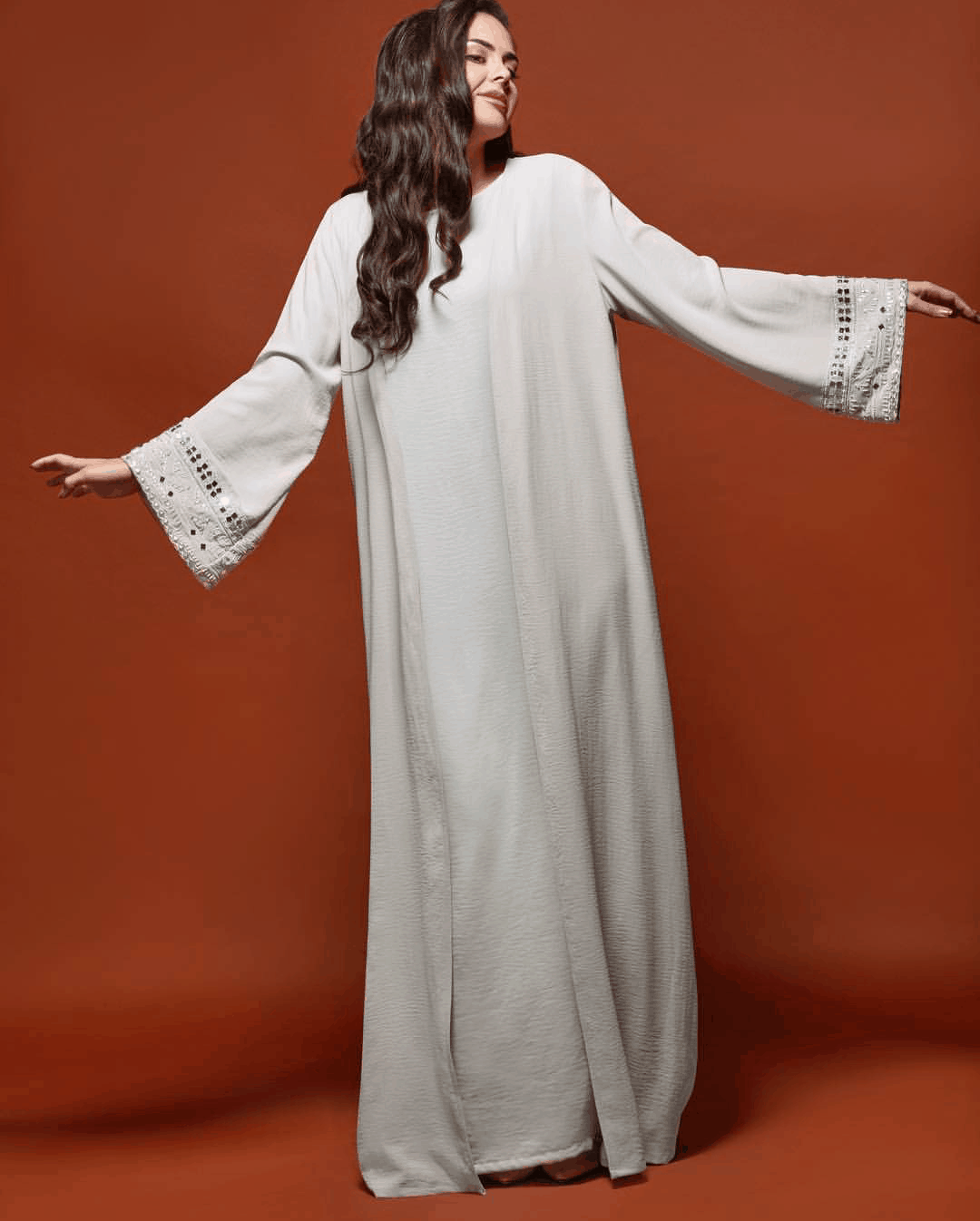 التطريز الناعم على الكمين والألوان المختارة بدقة جعلت من العباءة ساحرة وتلفت الأنظار.