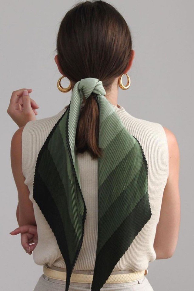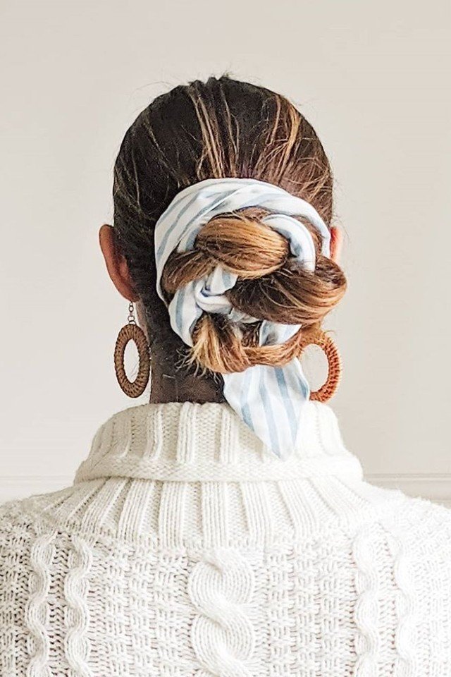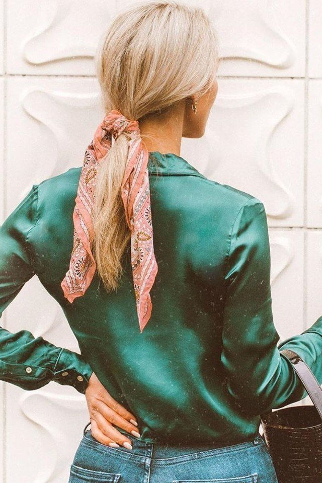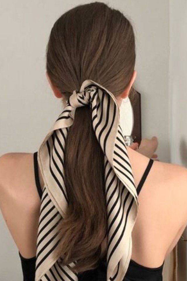 بسبب ضيق الوقت، تظطر الكثير من الفتيات إلى القيام بتسريحة ذيل الحصان، لذلك ننصحك بإضافة البندانا مع ربطها بشكل محكم ويمكنك اختيار ألوان تتناسق مع ملابسك.