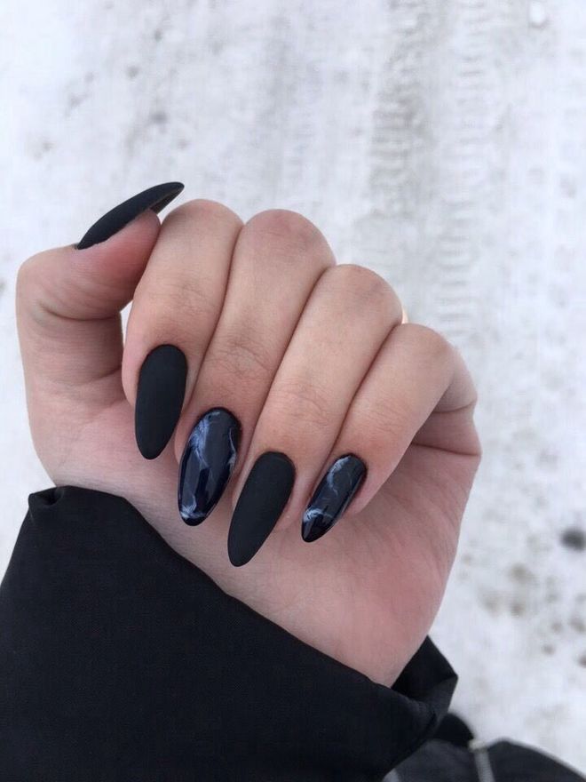 لاختيار هذا المانيكير الأنيق، فقط ضعي طبقة علوية ذات تأثير غير لامع بعد أن يجف طلاء الأظافر الأسود.