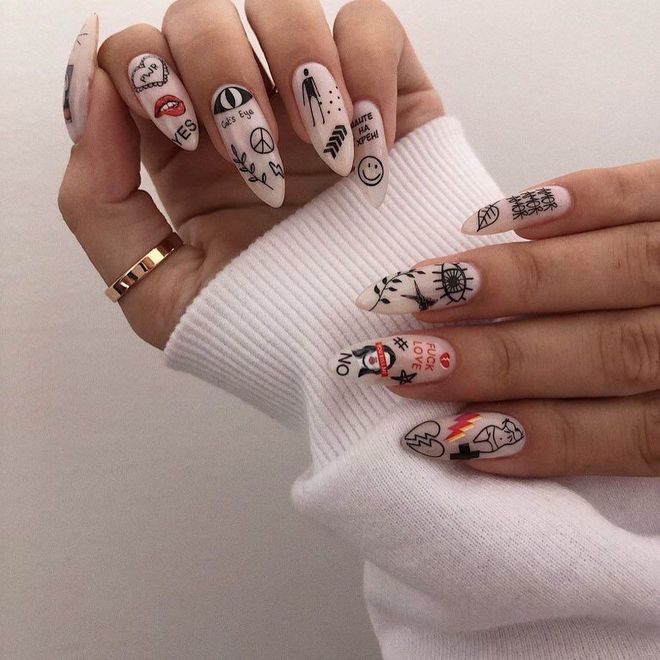 بينما يفضل البعض تطبيق طلاء الأظافر الأسود بشكل موحد على جميع الأظافر، يختار البعض الآخر الاستمتاع بالتفاصيل الصغيرة وإضافة بعض الرسومات الكلاسيكية أو الهندسية أو رموز، ومايميز هذا اللون أنه يمكنك مزجه مع جميع الألوان الأخرى.