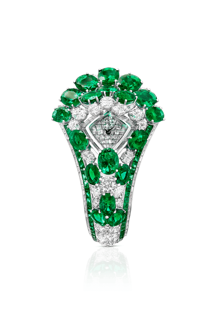 ومن دار غراف اخترنا لك ساعة Diamond Secret Ladies المصنوعة من الذهب الأبيض الذي تزينه قطعة من الألماس اللامع مع الزمرد، في تصميم أنثوي بأسلوب فاخر رائع.