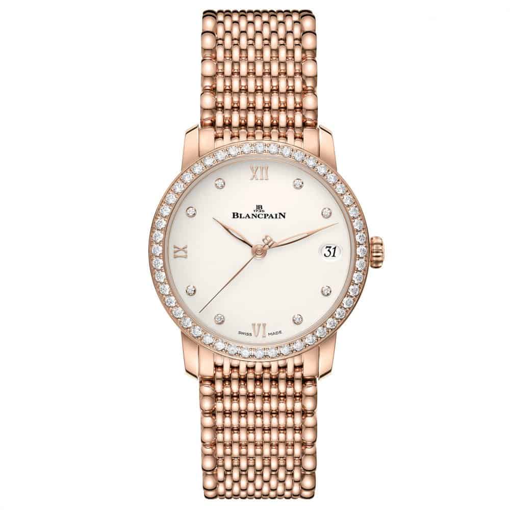 ومن العلامة السويسرية لصناعة الساعات المرموقة بلانسبان نقدم لك هذه الساعة التي صنعت من الذهب الوردي المزين بالألماس اللامع، في تصميم أنيق ومتألق.