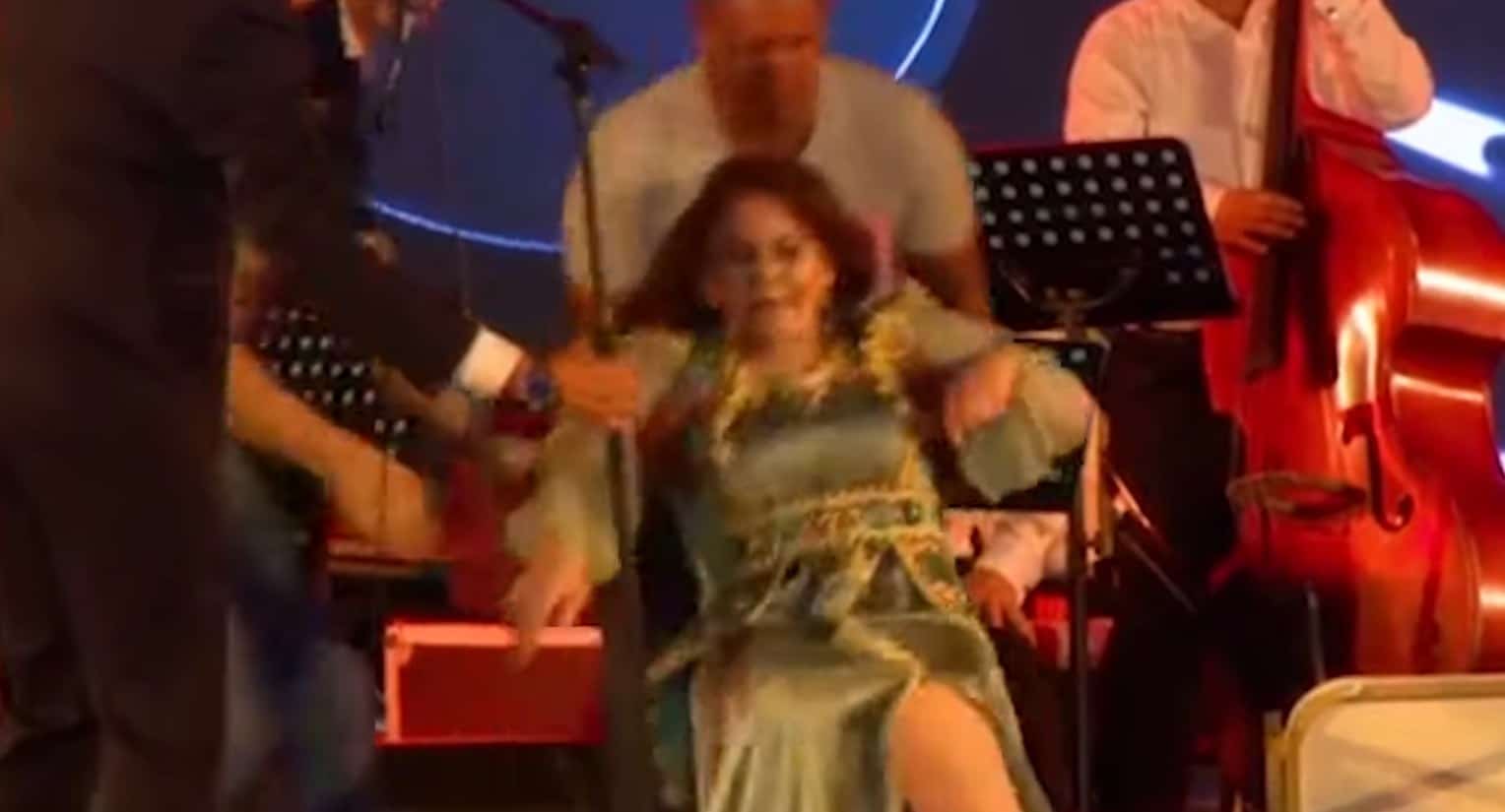 وخلال أداءها أمام جمهورها العريض، وتفاعل الحضور مع أغانيها بدأت المغنية السورية ميادة الحناوي في غناء أغنيتها الشهيرة “أنا بعشقك” التي لاقت ردود فعل غاية في الروعة من الجمهور، لكن تفاجأ الجميع بسقوط الفنانة على الأرض ليغمى عليها وسط حيرة الحضور، ويهرع أشخاص من الفريق المنظم للمهرجان المتواجدين خلف الكواليس لكي يساعدوها في النهوض، فتعالت أصوات تصفيق الجمهور لتشجيعها في مشهد غاية في الروعة، واعتذرت بذلك المطربة ميادة الحناوي على سقوطها من ثم طلبت الإذن من جمهورها حتى تكمل عرضها وهي جالسة على كرسي تم وضعه لها، وهذا ما وقع حيث لم تستطع الفنانة إتمام حفلتها وهي واقفة فأتمتها وهي جالسة وسط هتافات تشجيع من الجماهير الحاضرة، حيث قالت أنها تتعرض لهذا الموقف لأول مرة في مسيرتها.