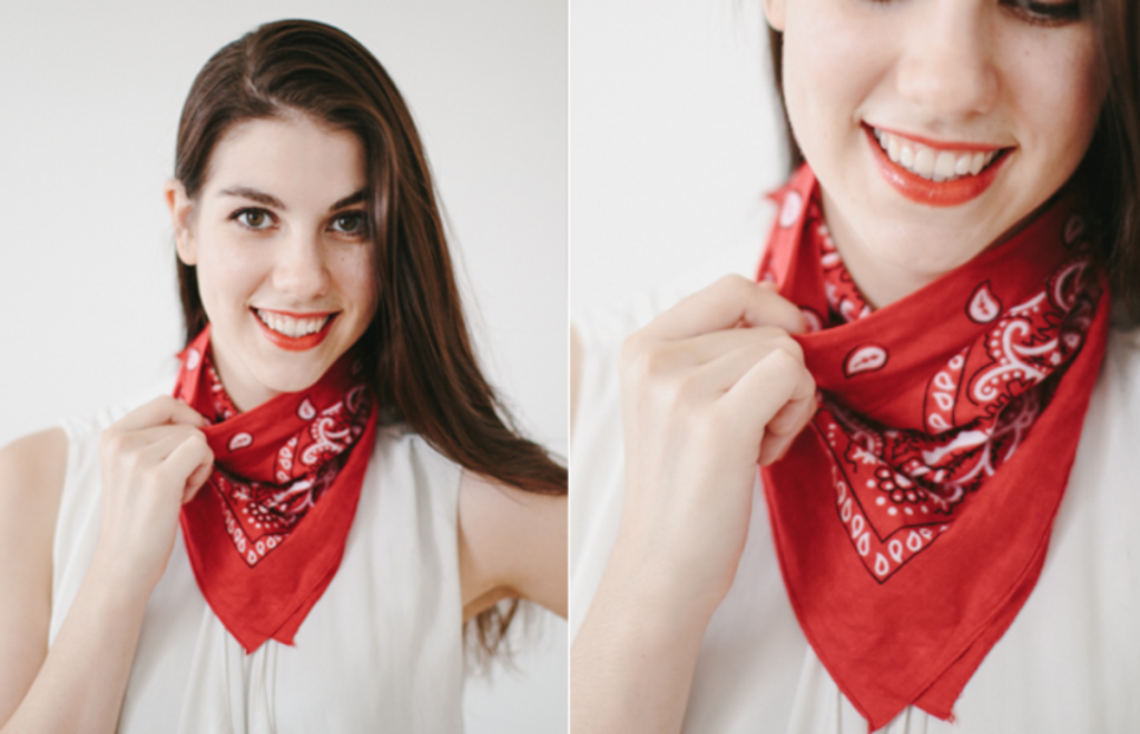 سوف تكون البندانا أفضل طريقة لاستبدال الوشاح حول الرقبة، حيث تستطعين لفها بأسلوب Lucky Luke لمحبي إطلالة رعاة البقر، أما إذا كنت تفضلين الإطلالات الناعمة والبسيطة فننصحك بلفها حول الرقبة بإحكام مع صنع عقدة من الأمام.