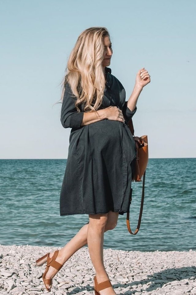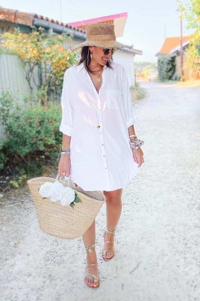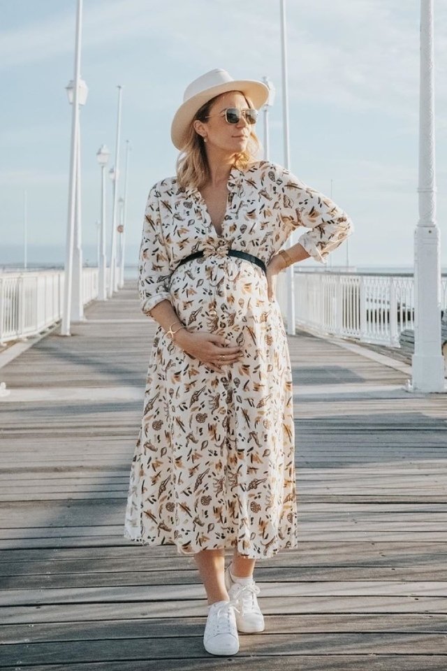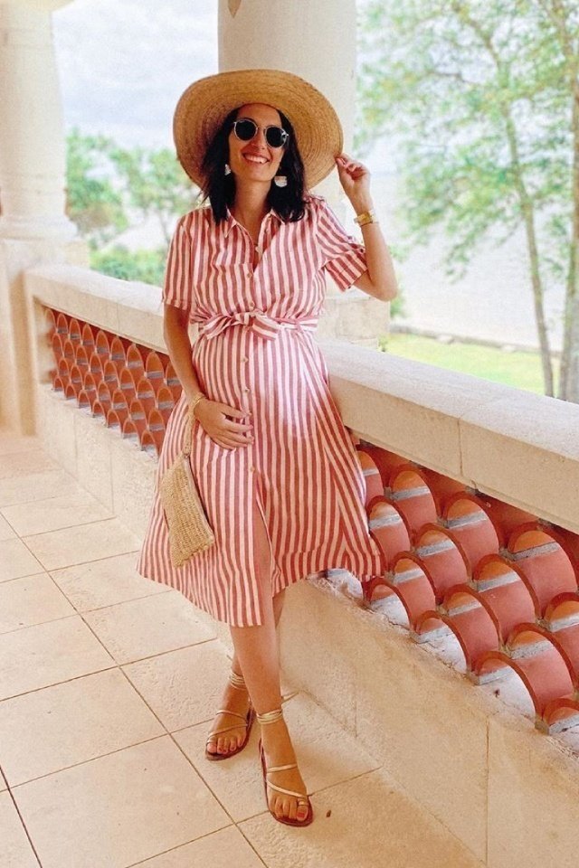 يعتبر الفستان القميص قطعة أساسية في خزانة المرأة الحامل، لأنه يمنحها الشعور بالراحة ولا يقوم بالضغط على بطنها مما يسبب لها الإزعاج. يمكنك اختيار القميص الفستان الأبيض الـ Oversized حتمًا سيكون مدهش وجذاب إذا قمت بتنسيقه مع صندل مسطح ومايوو عند الذهاب للشاطئ.