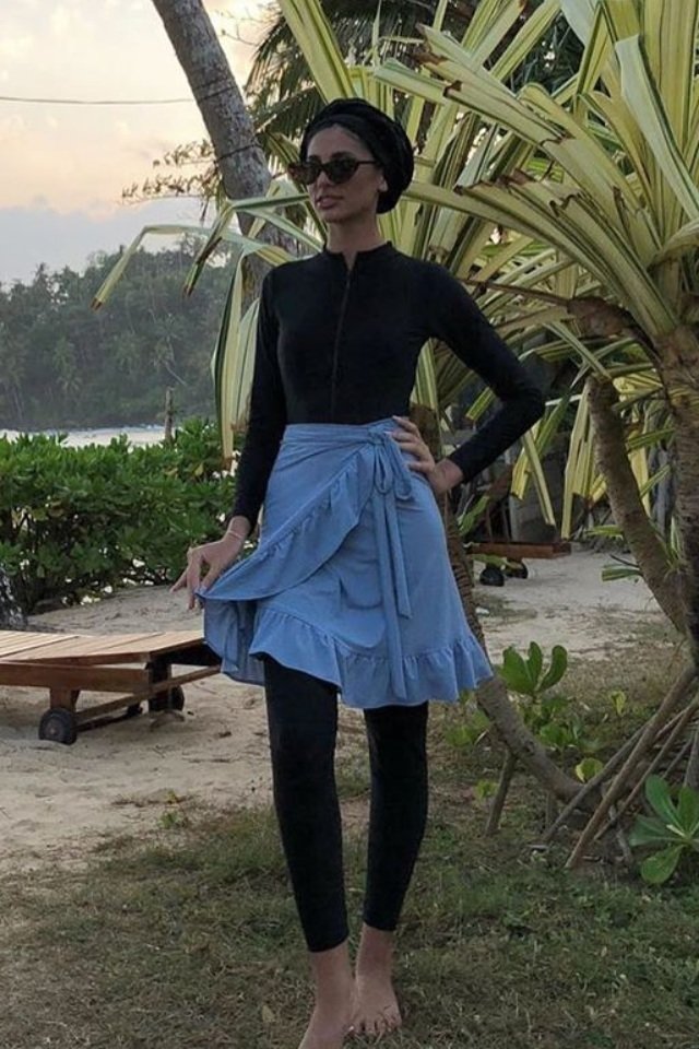 لقوام الساعة الرملية والكمثري، إذا كنت تبحثين عن تصميم عصري مميز، ننصحك بتجربة البوركيني بقصة الـ Wrap ، سيمنحك حتمًا مظهر راقي وجذاب، ولكن عليك اختيار اللون الذي يتماشى مع لون بشرتك.