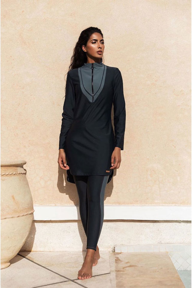 هناك تصاميم مختلفة من البوركيني لكن، يجب دائمًا اختيار الموديل الذي يتماشى مع شكل جسمك، ولاختيار البوركيني بقصة الـ A line يجب أن يكون شكل جسمك بقوام التفاحة، أو الكمثرى أو الساعة الرملية.