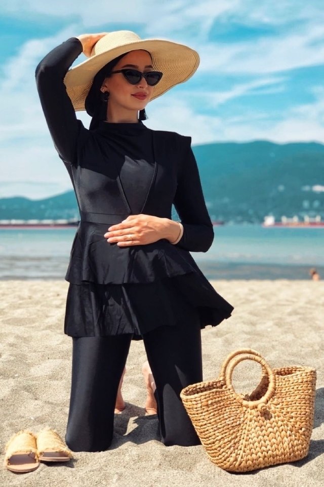 إذا كنت من صاحبات قوام التفاحة والمستطيل أو جسمك كيرفي وممتلأ، ننصحك باختيار مايوه المحجبات بالقصة المستقيمة، سيمنحك إطلالة أنيقة ومحتشمة. يفضل اختيار الألوان الداكنة.