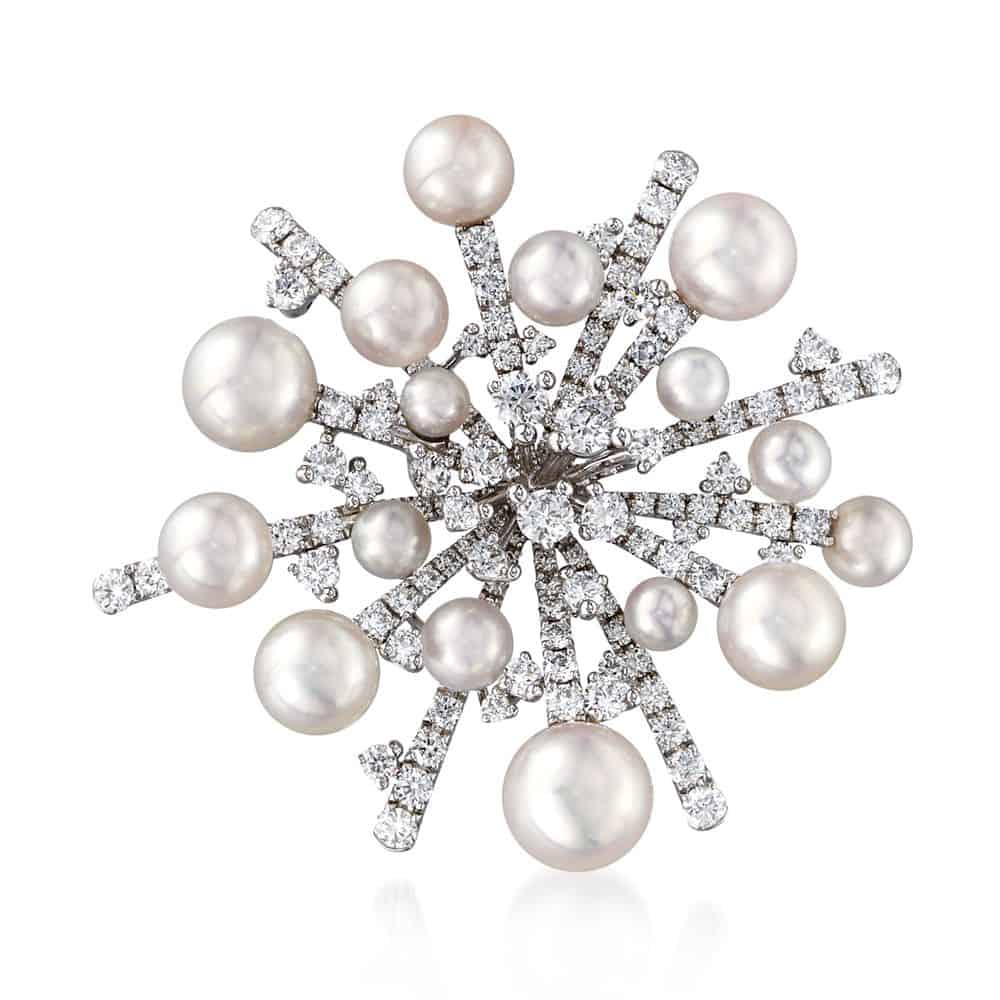 أبدعت دار ميكيميوتو بتصميمها من اللؤلؤ الطبيعي المسمى A World of Creativity SPLASH المصمم من الذهب الأبيض المرصع بالماس واللؤلؤ.
