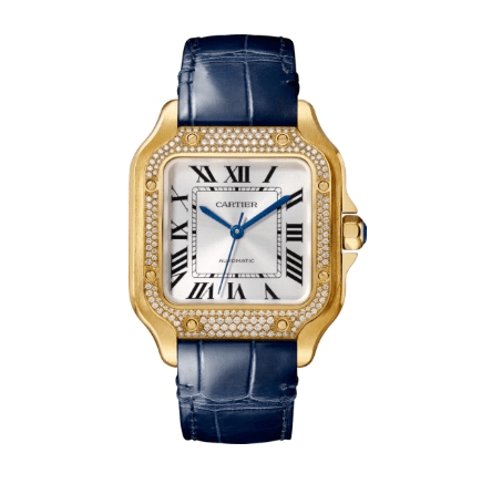 تميزت بلونها الأزرق الداكن والجذاب حيث تتكون من حزامها الجلدي والذهب الأصفر في المينا والتي زادتها أحجار الألماس فخامة لتصميمها، كما أنها تناسب مختلف إطلالتك النهارية والمسائية.