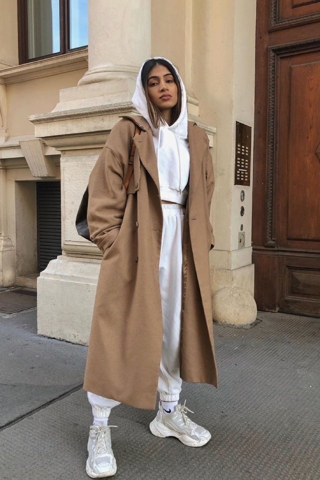 سيكون البنطلون الرياضي الـ Sweatpants من أفضل الخيارات المريحة للخروج للتسوق، يمكنك ارتدائه مع سترة خفيفة مثل الترنش، أو معطف، أو جاكيت جينز حسب تقلبات الطقس. تأكدي أنه سيمنحك إطلالة عصرية، فقط احرصي على تنسيق الألوان، يمكنك ارتداء ألوان ساطعة مع بنطلون محايد، أو العكس. إذا كنت تفضلينإطلالة هادئة يمكنك اختيار معطف بيج مع بنطلون وقميص أبيض.